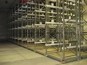 Mit diesem System kann man die Regale zusammenschieben und somit die Lagerkapazität beträchtlich erhöhen, ohne dabei den direkten Zugriff auf jede einzelne Palette zu verlieren.